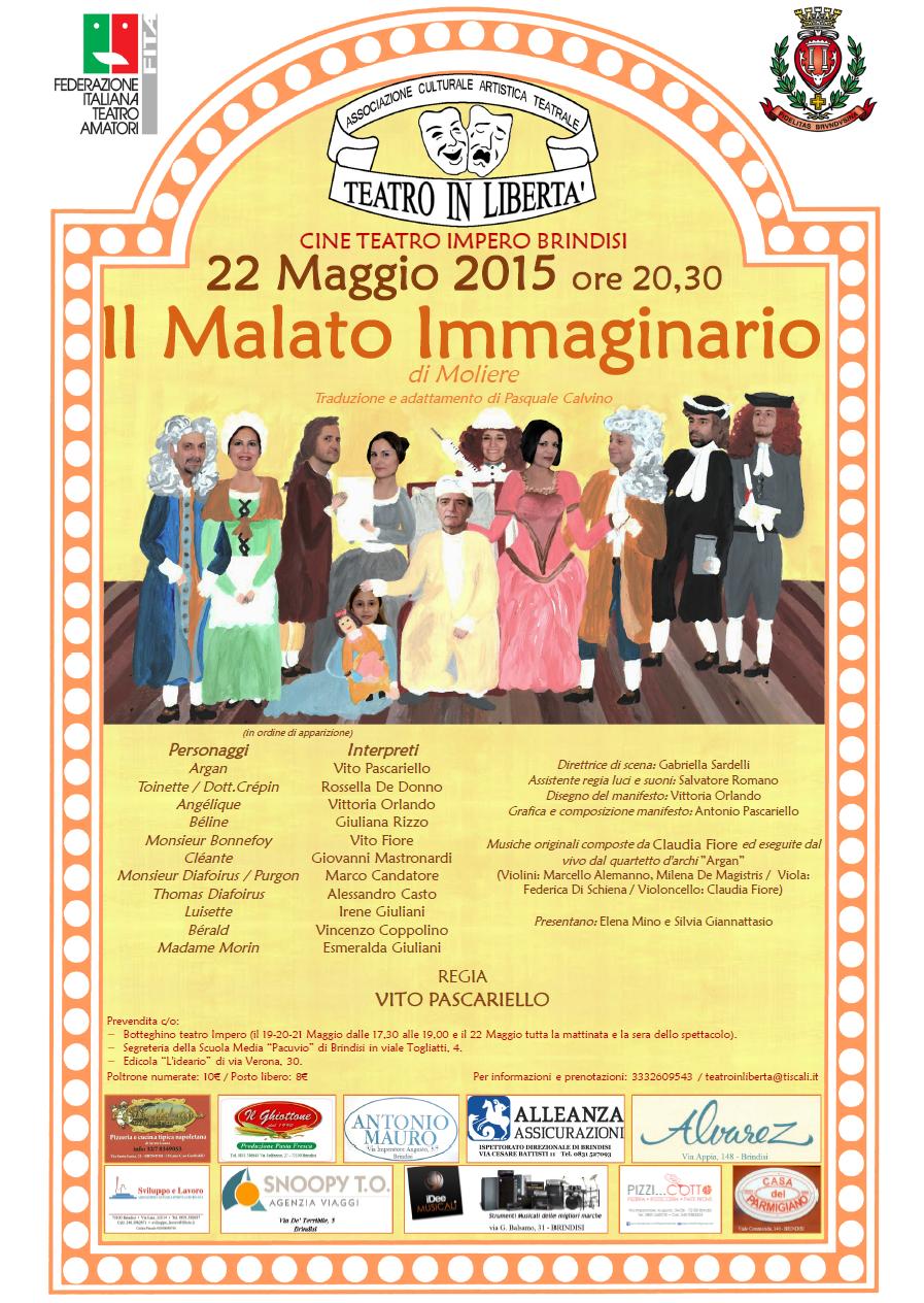 Ha una figlia, la bella Angelique, ed una seconda moglie, Belin: donna opportunista e fedifraga che si preoccupa soltanto di ereditare tutto alla morte del marito. Argan è vittima di uno sciame di dottorini-avvoltoi salassatori e ciarlatani che si nascondono dietro grandi paroloni in “latinorum”. Bérald (il fratello savio, tipico“raisonneur” molieriano), biasima la totale sottomissione di Argan alle medicine: ”La medicina, la trovo, detto fra noi, una delle più grandi follie dell’umanità e a guardare le cose con filosofia, non vedo buffonata più divertente; non trovo niente di più ridicolo, un uomo che vuole impicciarsi di guarirne un altro” . I guai cominciano quandoArgan promette la figlia in moglie ad un giovane dottorino di fresca laurea (Thomas Diaforois), in modo da potersi garantire un sereno futuro di consulti e ricette. L’ostilità della figlia, segretamente innamorata di Cléant, e la calcolata ingerenza della moglie, finiscono per spingere il povero Argan in una fitta trama di inganni, equivoci, burle e finzioni, giocate sulla sua stessa burbera ed inguaribile ingenuità…